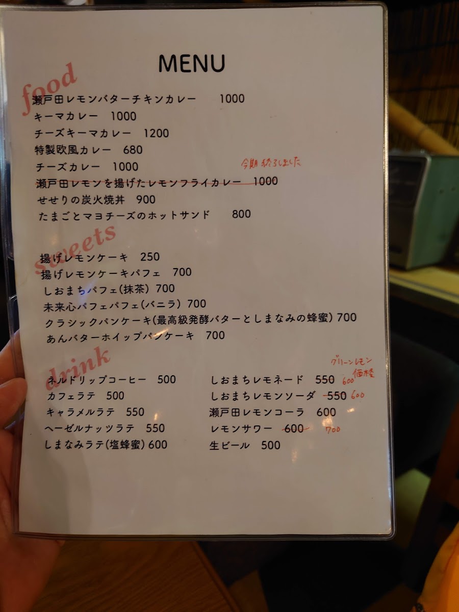 Shiomachi-tei Bicycle Cafe + Bar Menu